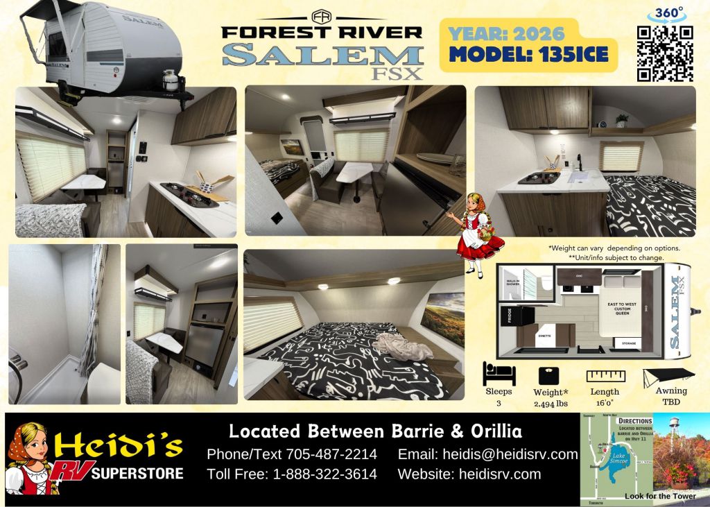 Discover Your Ideal RV at Heidi's RV Superstore, Proudly Serving Simcoe County ("Cottage Country"), including Barrie, Orillia, Innisfil, Collingwood, Wasaga Beach, and Beyond. Conveniently located ~1 hr North of Toronto on Hwy 11 in Oro-Medonte. Explore our extensive inventory online at www.heidisrv.com or Call Toll-Free 1-888-322-3614 for Expert Assistance
